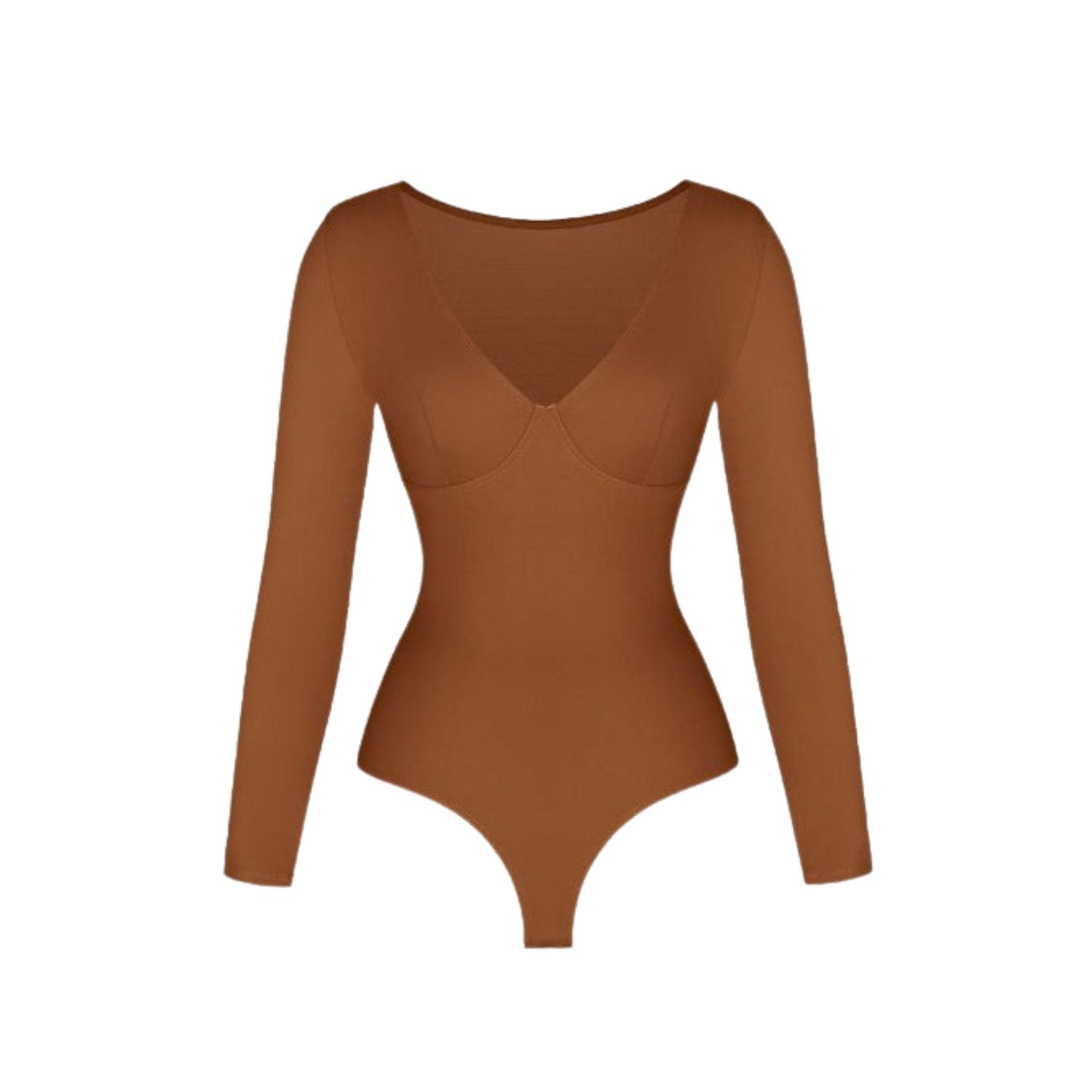 Elegance meets everyday shaping in the HolyShape V-Line Sculpt Bodysuit. Designed with a flattering V-neckline and long sleeves, this seamless thong bodysuit smooths your waist and tummy while highlighting your natural curves. Its sleek, form-fitting design makes it the perfect base layer for any outfit — or a statement piece on its own.